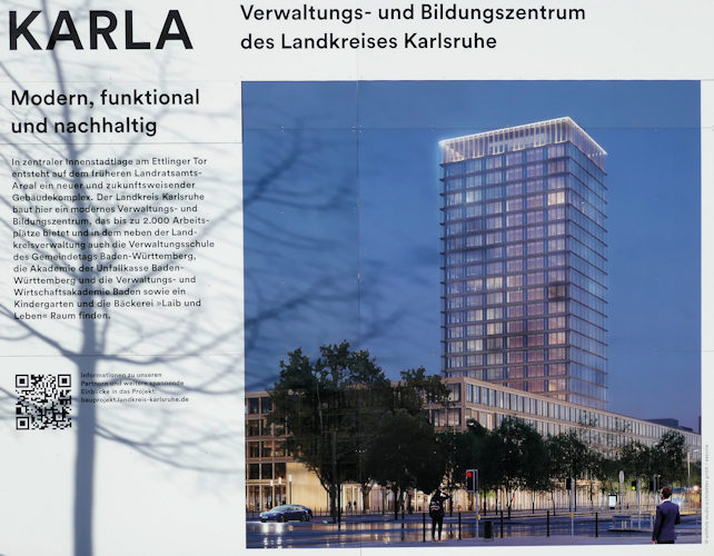 Blick zum eingerüsteten Hochhaus Landratsamt vom Ettlinger Tor